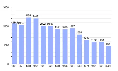 Gráfica de evolución demográfica de Motta d'Affermo entre 1861 y 2001 |