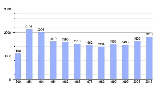 Gráfica de evolución demográfica de Mouilleron-Saint-Germain entre 1800 y 2013 |