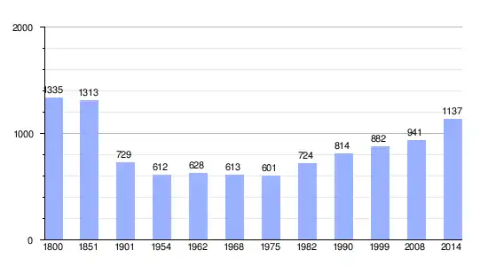 Gráfica de evolución demográfica de Moulins-en-Bessin entre 1800 y 2014 |