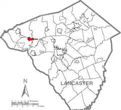 ![]() Ubicación en el condado de Lancaster ![]() Ubicación del condado en Pensilvania ![]() Ubicación de Pensilvania en EE. UU. | ||