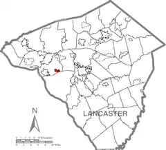 ![]() Ubicación en el condado de Lancaster ![]() Ubicación del condado en Pensilvania ![]() Ubicación de Pensilvania en EE. UU. | ||