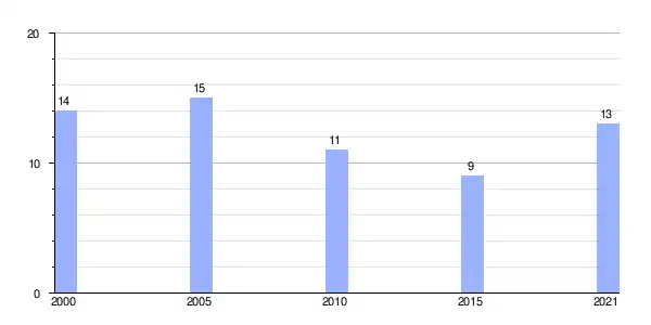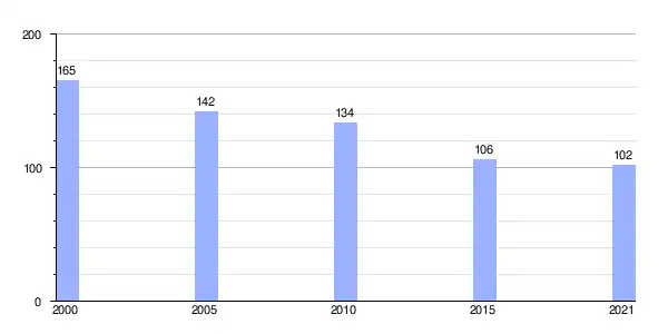 Gráfica de evolución demográfica de Mourelos (parroquia) entre 2000 y 2021 |