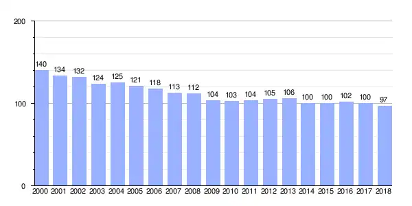 Gráfica de evolución demográfica de Mourentáns entre 2000 y 2018 |