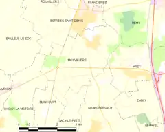 Moyvillers es una población y comuna francesa, en la región de Picardía, departamento de Oise, en el distrito de Compiègne y cantón de Estrées-Saint-Denis.