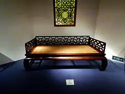 ´´Luohan-chuang´´(en chino: 罗汉床), cama de Arhat. Cama rodeada por sus tres lados de tablero como respaldo y brazos. Estos también pueden ser de tracería como una barandilla con un lado de frente abierto para el acceso.