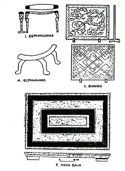la tipología del mobiliario del que vamos a hablar pertenece a la época de los post-Tang. La gente ya se sentaba sobre sillas o bancos altos y empleaban mesas de acuerdo con la altura de los asientos, en vez de hacer toda la vida sobre la esterilla y en el suelo. Siguiendo esta gran evolución, se diseñaron otros muebles independientes y de complemento.