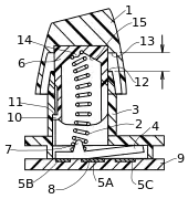 La primera patente de un mecanismo de este tipo data de 1942, formando parte de un pulsador eléctrico.[1] El sistema del muelle de pandeo fue utilizado por los teclados Modelo F de IBM (por ejemplo, el teclado AT) y el Modelo M, más común. Se describen en la Patente USPTO n.º 4118611 (Modelo F) y en la Patente USPTO n.º 4528431 (Modelo M), ambas ahora caducadas.