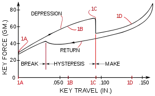 Al pandear el muelle, el martillo gira hacia adelante empujado por el resorte, y golpea un contacto eléctrico que registra la presión de la tecla. En el Modelo M, el contacto eléctrico es una lámina de membrana similar a la de un teclado moderno con interruptor de domo. En el diseño anterior, el Modelo F, se utilizaba un contacto capacitivo.