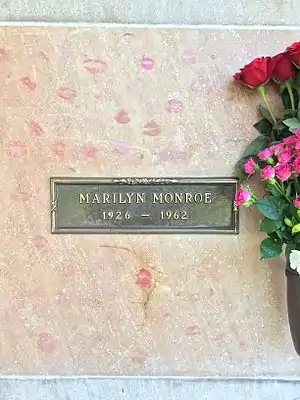 ![]() Tumba de Marilyn Monroe en el Pierce Brothers Westwood Village Memorial Park Cemetery de Westwood (Los Ángeles). MARILYN MONROE 1926 - 1962 | ||