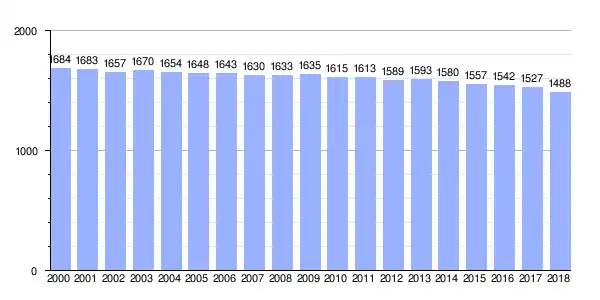 Según el INE en 2009 tenía 1635 habitantes (821 mujeres y 814 hombres) distribuidos en 1 entidad de población, lo que supone una disminución en relación al año 2004, cuando tenía 1654 habitantes, y al 1999 cuando tenía 1.742 habitantes.