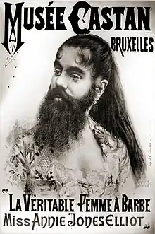 Una excepción notable fueron las famosas mujeres barbudas de los espectáculos de rarezas del siglo XIX y principios del siglo XX, cuya anomalía era celebrada, como Josephine Clofullia la mujer barbuda del museo de Barnum o la del circo Ringling Brothers Jane Barnell. Muchos circos y carnavales de fenómenos de la época presentaban falsas mujeres barbudas que en realidad eran mujeres con postizos faciales u hombres vestidos de mujer, práctica circense de la que se burla el actor y antiguo artista circense W. C. Fields en la película de 1939, No puedes engañar a un hombre sincero.[3]