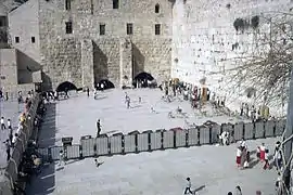 El muro de las Lamentaciones es uno de los lugares sagrados judíos. Había formado parte del muro de contención del Monte del Templo, sobre el cual había estado el segundo Templo de Jerusalén (antes de su destrucción por parte de los romanos el año 70 dC). Actualmente, está bajo el control del Gran Rabinato de Israel y la seguridad del Muro está a cargo de la Policía del Muro (Kotel).