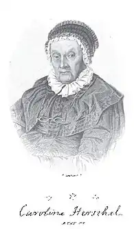 -debido a los problemas de salud que tuvo en su infancia: viruela a los tres años, que le dejó la cara marcada, y tifus a los diez, que casi acaba con su vida y que detuvo su crecimiento -quedó con 1.20 m de estatura -. Su inteligencia, extraordinariamente despierta, y sus buenas dotes musicales, junto con la ayuda de su hermano William -12 años mayor que ella, que se la llevó con él cuando se fue a trabajar a Inglaterra- le permitió brillar primero como soprano y más tarde -cuando su hermano decidió dedicarse profesionalmente a la astronomía- como astrónoma. Ya como ayudante de su hermano comenzó a ser conocida, sobre todo a partir del descubrimiento del cometa de 1786, por el que fue reconocida por la Royal Astronomical Society. así como por el rey Jorge, con una asignación de 50 libras anuales (cantidad considerable para la época) por su trabajo como asistente de su hermano. La fama de los hermanos Herschel se extendió por toda Europa, tanto por la precisión de sus observaciones astronómicas como por los telescopios creados por ellos y que permitían explorar regiones celestes mucho mayores al tener mucha menos distancia focal, por lo que eran ideales para barrer el cielo y detectar cometas, por lo que fueron también conocidos como los "barredores de cometas". Ambos hermanos crearon un gran equipo: él aportaba la intuición y la ambición de saber, y ella una inmensa capacidad de trabajo y de disciplina, ambas necesarias para recopilar los resultados de las observaciones nocturnas, realizar los cálculos y prepararlos para su publicación. El haber sobrevivido 25 años a su hermano, y continuar realizando, ya en solitario, los trabajos que antes realizaban conjuntamente, la hizo más conocida y reconocida en los ámbitos científicos del momento, consiguiendo distinciones tanto en Inglaterra como Prusia, a donde regresó los últimos años de su vida, que a pesar de su mala salud se prolongó hasta los 98 años.[12]