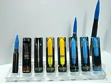 La munición telescópica envuelta para la ametralladora ligera LSAT ha alcanzado el nivel de preparación tecnológica 7.[1] En agosto de 2013, AAI Corporation recibió un contrato de US $ 2,05 millones para continuar desarrollando partes del programa LSAT de EE. UU. Parte del contrato es refinar aún más municiones telescópicas con carcasa de 5,56 mm y desarrollar cartuchos telescópicos con carcasa de 7,62 mm.[2]