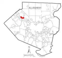 ![]() Ubicación en el condado de Allegheny ![]() Ubicación del condado en Pensilvania ![]() Ubicación de Pensilvania en EE. UU. | ||