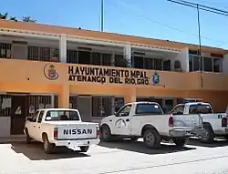 El gobierno del municipio de Atenango del Río le corresponde al Ayuntamiento, éste lo integran un síndico y un cabildo formado por tres regidores por mayoría relativa y tres por representación proporcional, todos son electos mediante una planilla única para un periodo de tres años no renovables para el periodo inmediato, pero si de manera no continúa, las elecciones se llevan a cabo el primer domingo del mes de octubre y el ayuntamiento entra a ejercer su cargo el día 1 de enero del año posterior a la elección.[6]