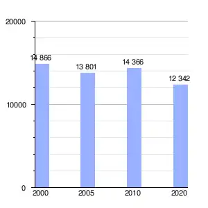 Gráfica de evolución demográfica de Municipio de Churumuco entre 2000 y 2020 |