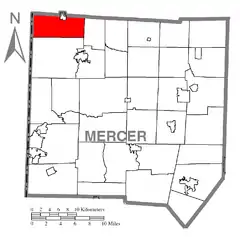 ![]() Ubicación en el condado de Mercer ![]() Ubicación del condado en Pensilvania ![]() Ubicación de Pensilvania en EE. UU. | ||