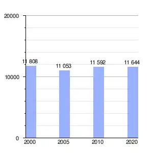 Gráfica de evolución demográfica de Municipio de Huandacareo entre 2000 y 2020 |