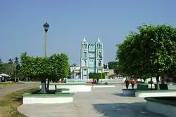 Jardinado con palmeras, almendros, ficus y gran variedad de plantas de ornato. Su plaza y andadores están adoquinados y sobresale una fuente de forma circular. en cuyo centro se construyó una gran jícara con magníficos labrados que representa la artesanía típica del municipio.