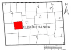 ![]() Ubicación en el condado de Susquehanna ![]() Ubicación del condado en Pensilvania ![]() Ubicación de Pensilvania en EE. UU. | ||