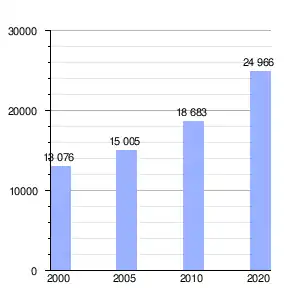 De acuerdo a los resultados del Censo de Población y Vivienda de 2020 realizado por el Instituto Nacional de Estadística y Geografía, la población total del municipio es de 24 966 habitantes, lo que representa un crecimiento promedio de 3% anual en el período 2010-2020 sobre la base de los 18 683 habitantes registrados en el censo anterior. Al año 2020 la densidad del municipio era de 106,1 hab/km².[8]