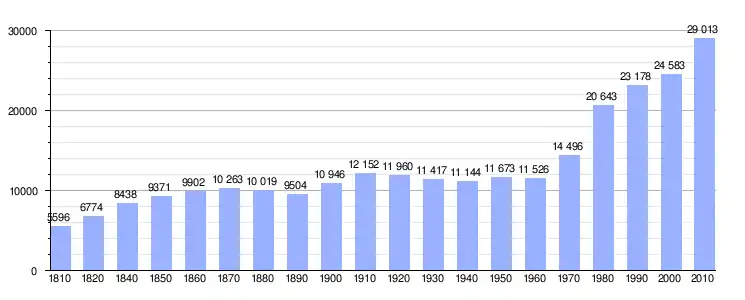 Población (1810-1990) según la Base de Datos de Población de la Universidad de Umeå[5] e información de Statistiska centralbyrån |