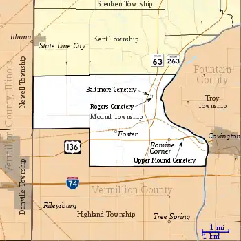 - «Sistema de Información de Nombres Geográficos: Municipio de Mound (condado de Warren, Indiana)». Geographic Names Information System (en inglés).