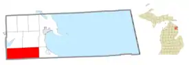![]() A la izquierda, ubicación entre las subdivisiones administrativas del condado de Alpena. A la derecha, ubicación del condado de Alpena en el estado de Míchigan