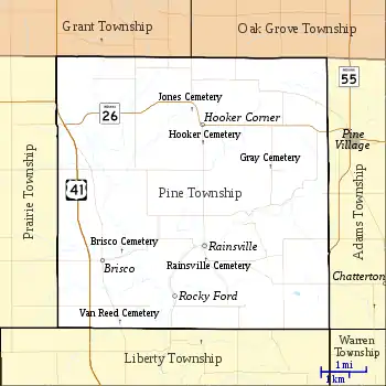 - «Sistema de Información de Nombres Geográficos: Municipio de Pine (condado de Warren, Indiana)». Geographic Names Information System (en inglés).