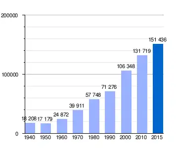 Gráfica de evolución demográfica de Municipio de Praia entre 1940 y 2015