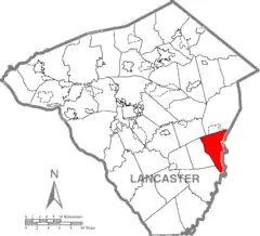 ![]() Ubicación en el condado de Lancaster ![]() Ubicación del condado en Pensilvania ![]() Ubicación de Pensilvania en EE. UU. | ||