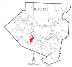 ![]() Ubicación en el condado de Allegheny ![]() Ubicación del condado en Pensilvania ![]() Ubicación de Pensilvania en EE. UU. | ||