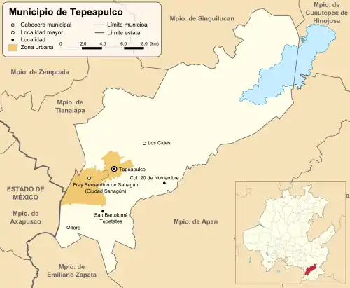 ![]() Ubicación del municipio de Tepeapulco en el estado de Hidalgo. | ||
