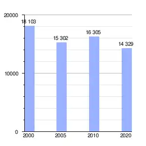 Gráfica de evolución demográfica de Municipio de Tuzantla entre 2000 y 2020 |