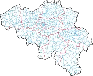 Bélgica se compone de 581 municipios (en neerlandés gemeenten, en francés communes, en alemán Gemeinde) agrupados en cinco provincias en cada una de las dos regiones y en una tercera región, la Región de Bruselas-Capital, que comprende 19 municipios que no pertenecen a ninguna provincia. En la mayoría de los casos los municipios son las subdivisiones administrativas más pequeñas de Bélgica, aunque en municipios de más de 100.000 habitantes, por iniciativa del consejo local, se pueden crear entidades administrativas submunicipales con consejos electos. En realidad, solamente Amberes, con cerca de 520.000 habitantes, se ha subdividido en nueve distritos (en neerlandés districten). A veces, en castellano también se les denomina distritos a los arrondissements belgas, un nivel administrativo entre la provincia (o la región capital) y el municipio.