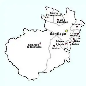 Villa Bisonó (Navarrete) | Santiago | 20 de octubre de 1961 | 75,673 | 92.60 | 817/km² | |