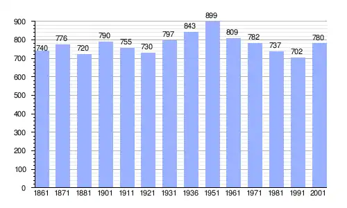 Gráfica de evolución demográfica de Mura entre 1861 y 2001 |
