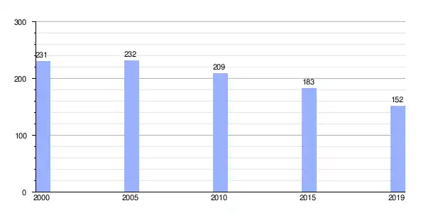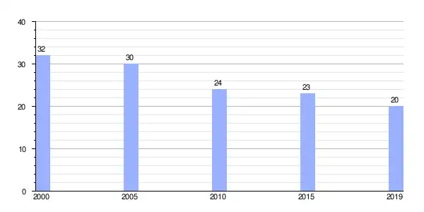 Gráfica de evolución demográfica de Muradelle (aldea) entre 2000 y 2019 |