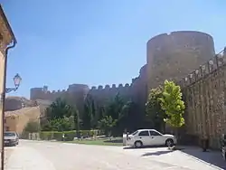 - Muralla por el lado norte. A la derecha, la Puerta del Azogue.