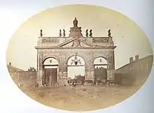 - Portillo del Prado que era la salida hacia Renedo. Tuvo como puerta la portada de la iglesia del convento de los mercedarios calzados que trasladaron cuando se derribó el edificio; En 1873 el Portillo fue también desmantelado pasando dicha puerta a engrosar el patrimonio desparecido.[51]