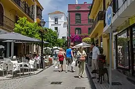 ![]() Actual plaza Puente Ronda, donde se ubicaba la puerta de Ronda de la muralla de Marbella. Vista desde calle Peral | ||