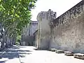 El conjunto de defensas de la ciudad se encuentran en el lado septentrional de la llamada Rocher des Doms, o promontorio rocoso sobre el Ródano en el que se encuentra el Palacio de los Papas y la catedral. Entre sus torres, destacan la llamada Tour des Chiens («Torre de los perros») y la Tour du Chatelet, que domina el acceso al puente de Saint Bénézet.