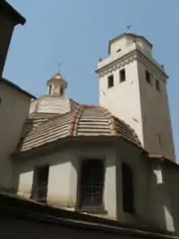 Su estructura coincidía con la actual estructura que cierra la calle de San Pietro a la altura de la plaza de las Cinque Lampadi. La iglesia de San Piedro es ahora de San Pietro della Porta.
