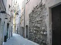 Génova, ligada a la antigua Roma, está configurada como foedus aequum en la política internacional romana, viene destruida en el año 205 a. C. por el general Magone, hermano de Aníbal. El procónsul Spurio Lucrezio Tricipitino ordenó inmediatamente la reconstrucción. Parece pausible la teoría que distingue en aquella parte del centro histórico organizada por tres líneas ortogonales, la antigua Genua romana, con sus límites comprendidos entre la calle de los Giustiniaini, la calle Filippo Turati la cuesta Pollaiuoli y la collina del Castello.