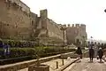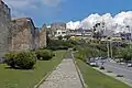 - Parte de las murallas con una de las puertas supervivientes al fondo.