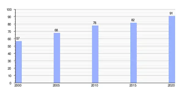 Gráfica de evolución demográfica de Muras (lugar) entre 2000 y 2020 |