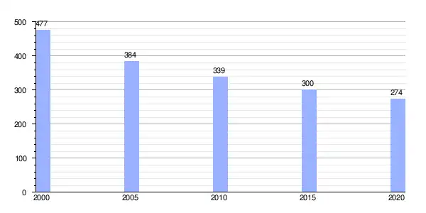 Gráfica de evolución demográfica de Muras (parroquia) entre 2000 y 2020 |