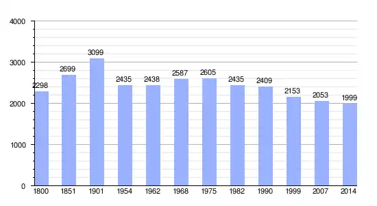 Los datos demográficos contemplados en este gráfico de la comuna de Murat[4] se han cogido de 1800 a 1999 de la página francesa EHESS/Cassini, y los demás datos de la página del INSEE.[5]