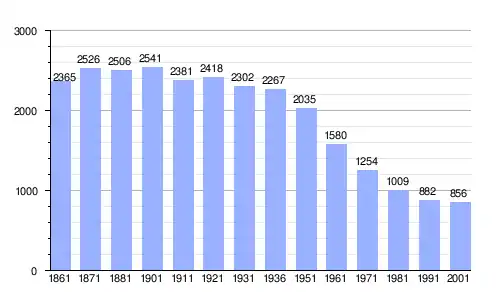 Gráfica de evolución demográfica de Murazzano entre 1861 y 2001 |